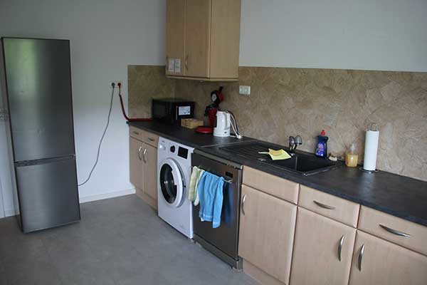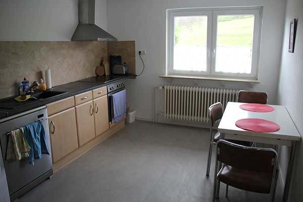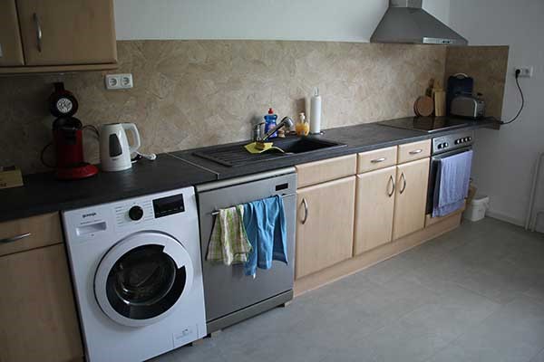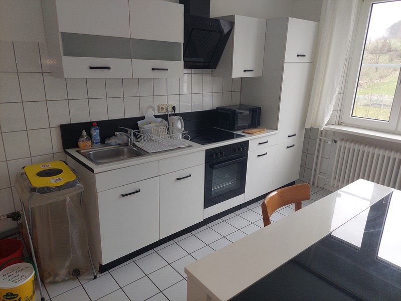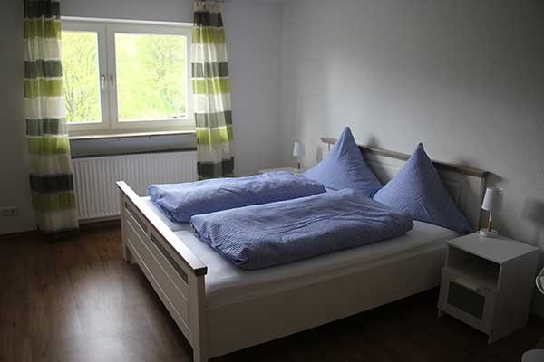 - 1 Wohnung im 2. OG mit 4 Zimmern: 2 Doppelzimmer, 2 Zweibett-Zimmer mit 2 Bädern und einer Küche mit Herd, Kühlschrank und Waschmaschine